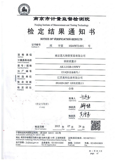 南京計(jì)量院渦街合格報(bào)告